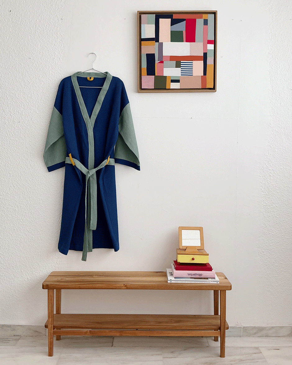 Hemos aprovechado los últimos retales de tejido para hacer una pequeña tirada de albornoces pero waste: El espíritu de Hamabi siempre viene del patchwork y jugar con colores, así que la mejor manera de usarlos era diseñar nuevos modelos aprovechando todos los tejidos. Están llenos de contrastes y piezas coloridas que los hacen únicos 🌈